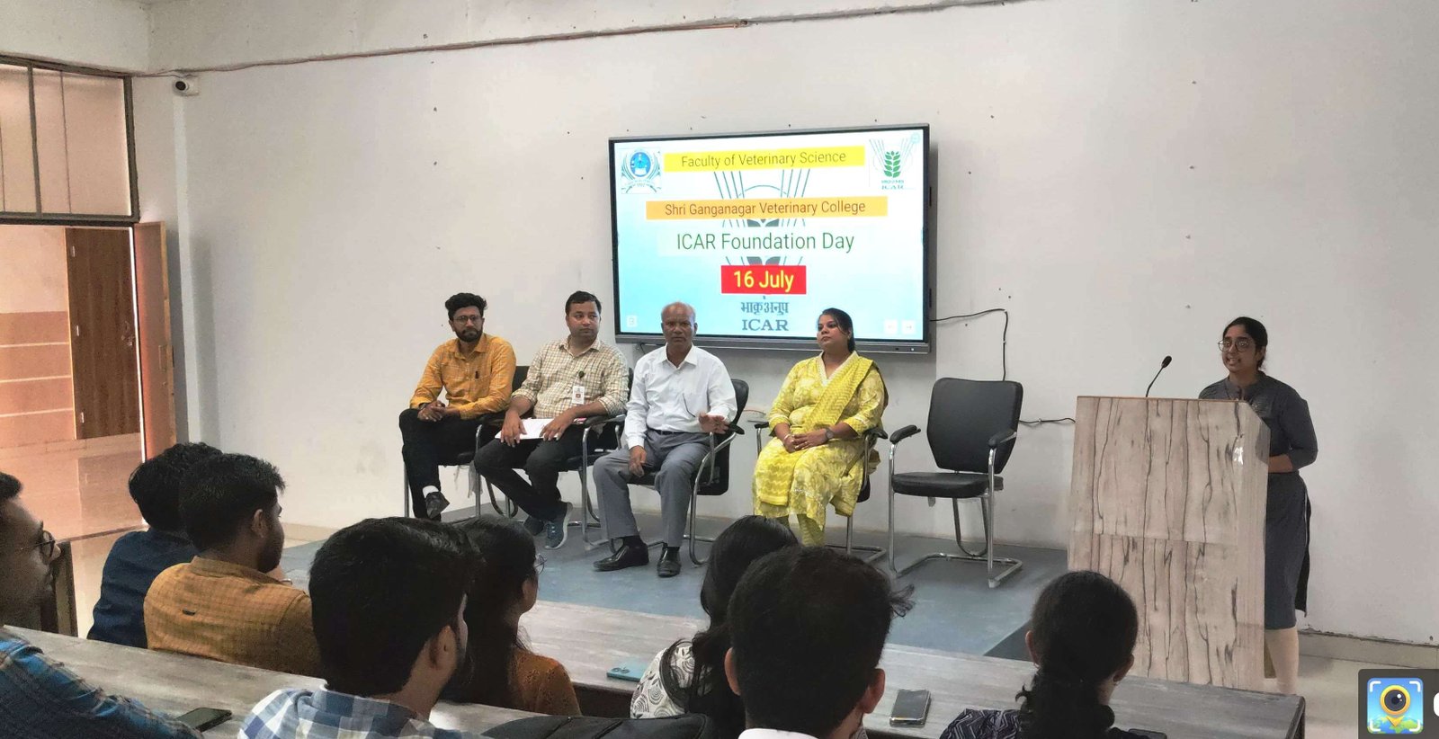 Sri Ganganagar Veterinary College celebrated the ICAR foundation Day. On this occasion role of ICAR was presented by Dr. Gagan Chawla. Chairman Dr. RPS Baghel, delivered lecture regarding ICAR and it's role in Agriculture and Animal Husbandry development and on Education.