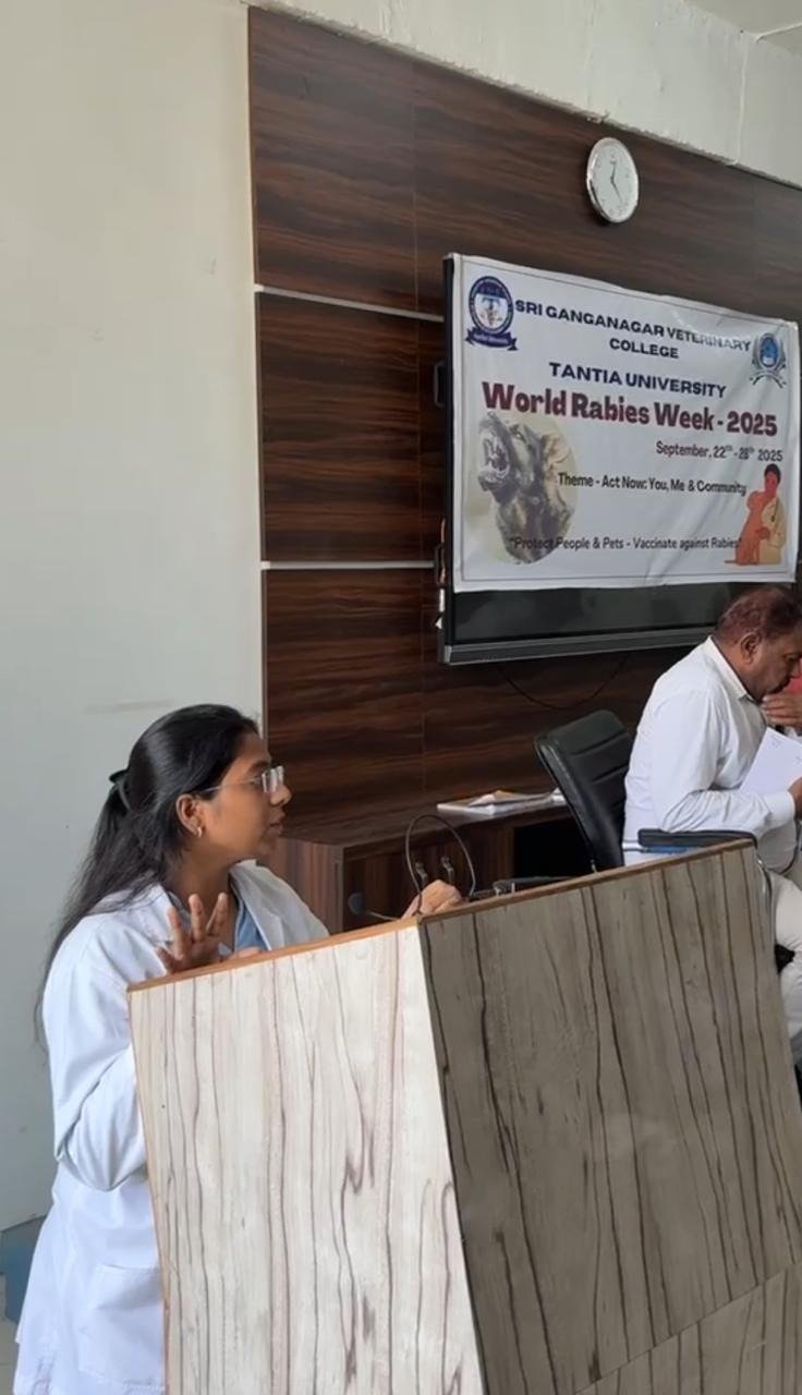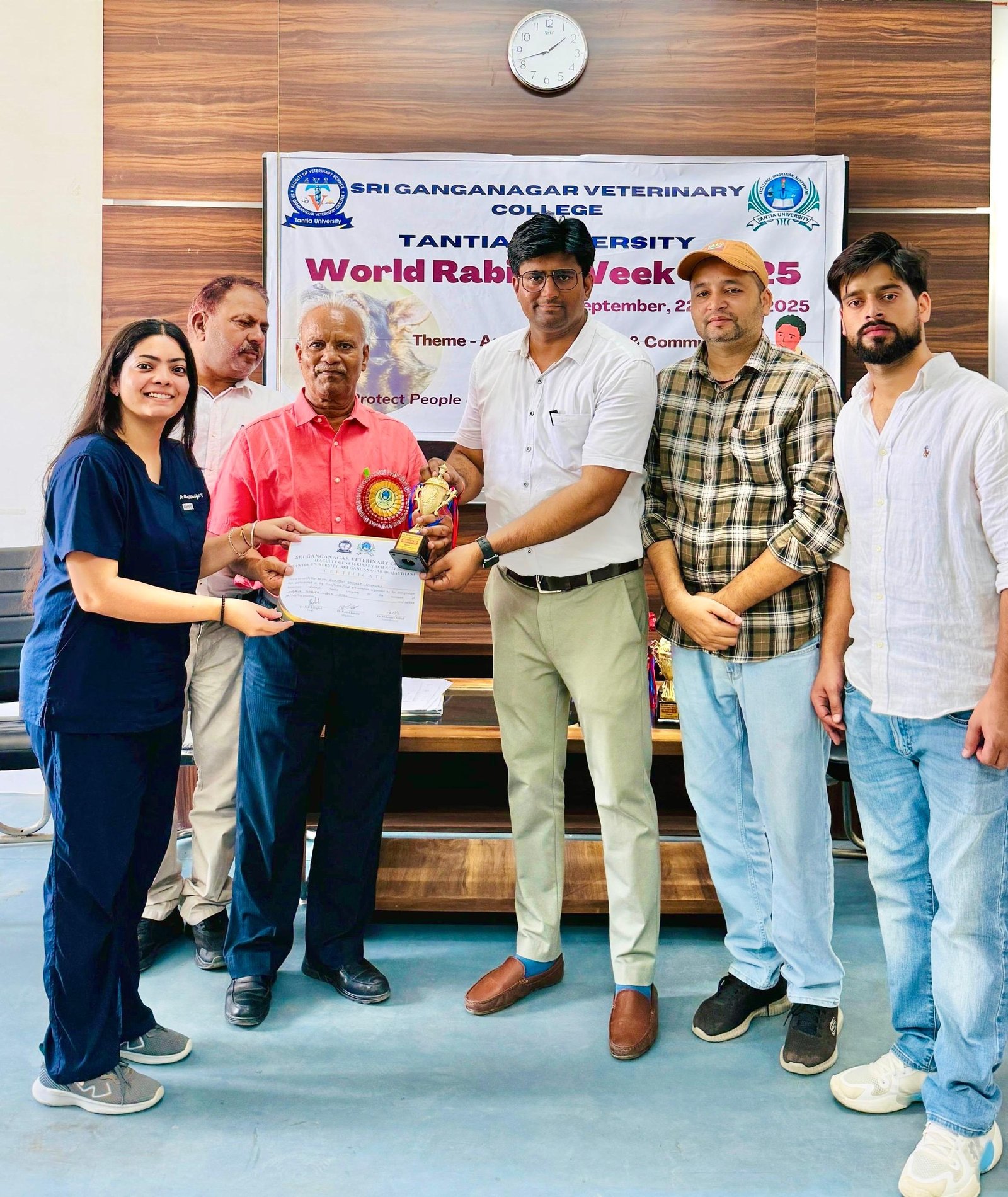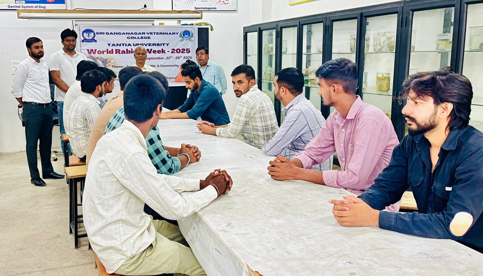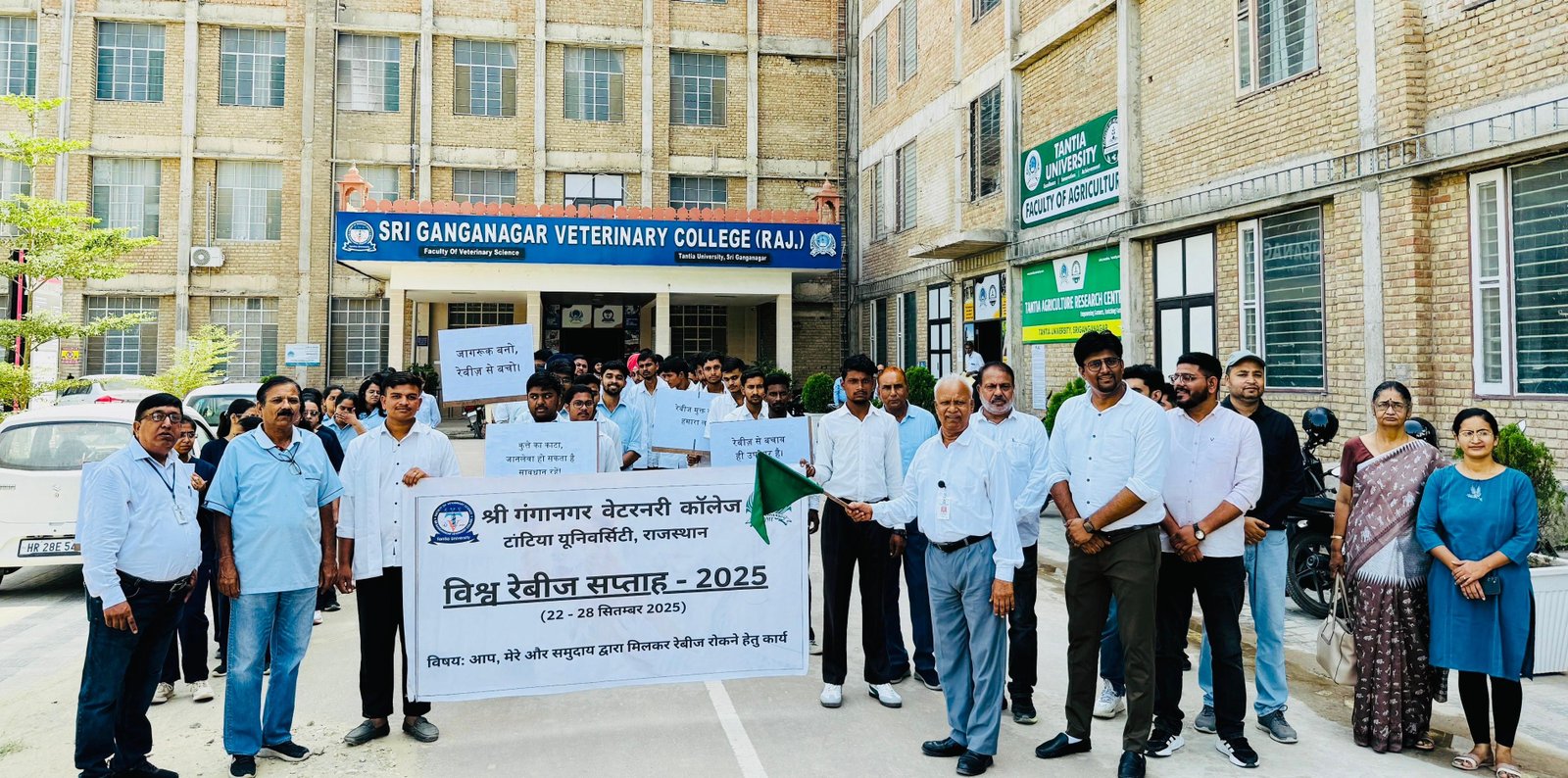 The Faculty of Veterinary Science, Tantia University, Sri Ganganagar, organized World Rabies Week from 22nd to 28th September 2025 under the global theme "Act Now: You, Me, Community." The week-long programme was aimed at creating awareness about rabies, promoting preventive measures, and sensitizing students, staff, and the community about their role in rabies eradication.