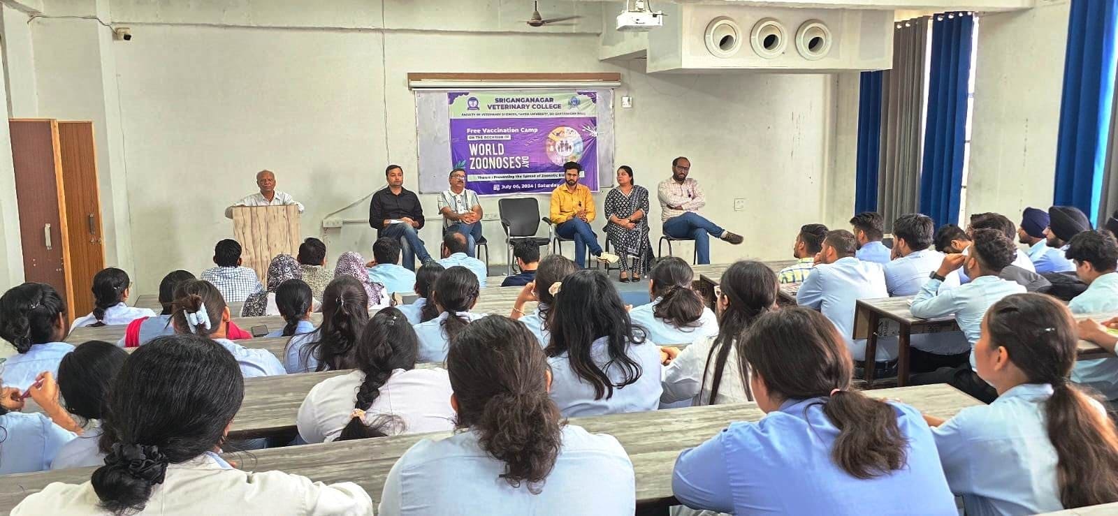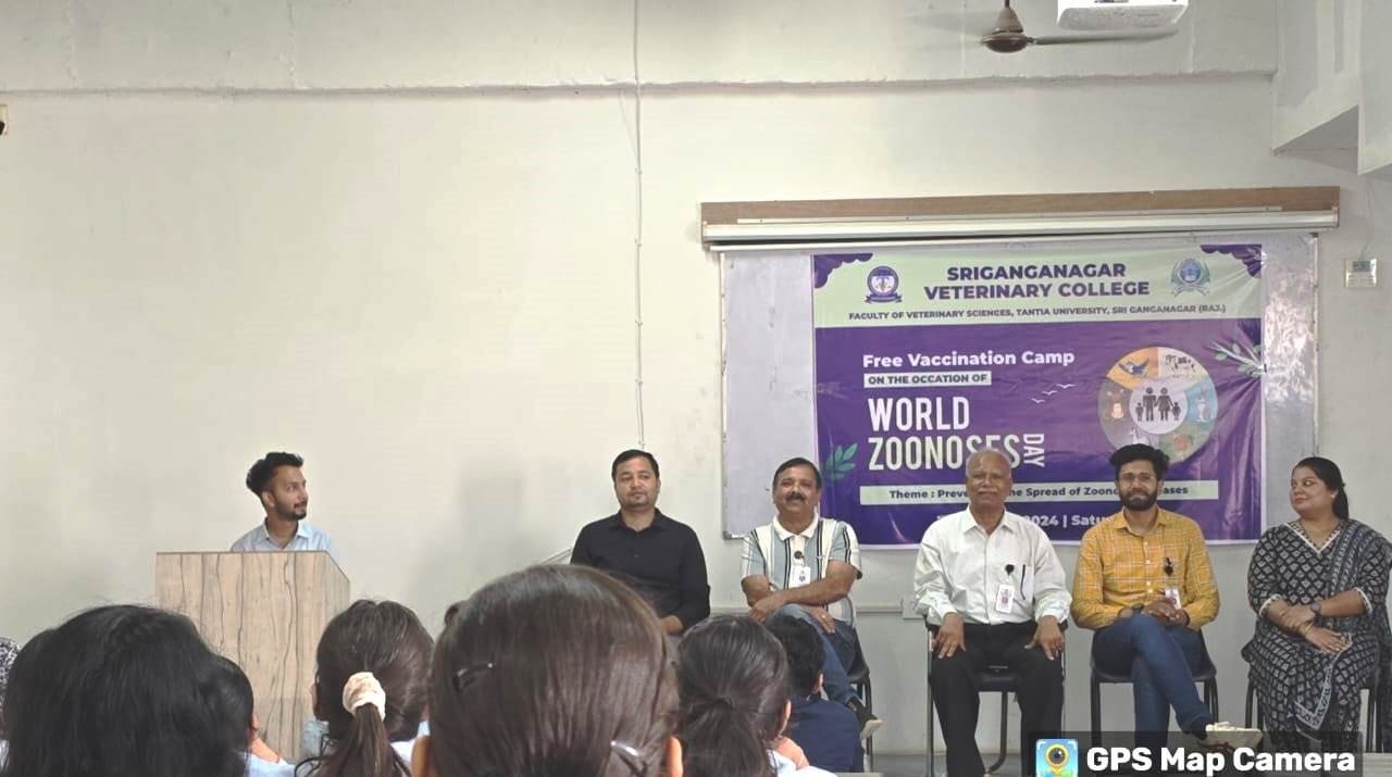 Sri Ganganagar Veterinary College celebrated World Zoonoses Day on July 6, 2024. The event featured a student debate, an essay competition, and a free vaccination camp. These activities aimed to educate about diseases that can spread between animals and humans.